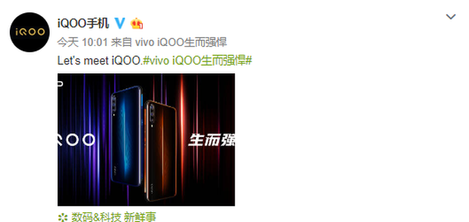 2月25日消息,vivo旗下子品牌iQOO手机今天在官方微博正式公布了旗下首款手机的照片。
