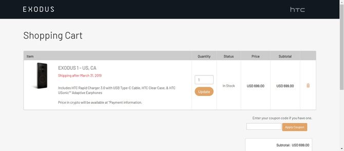 如今,HTC终于开放HTC Exodus 1的购买,支付手段不在局限于虚拟货币,售价699美元,约合人民币4672元,相比首发价降了不少。但遗憾的是,这款手机并不是现货,需要等到3月31日后才能发货。