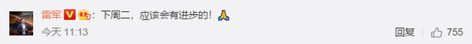 不过,雷总在评论处表示“下周二,应该会有进步的!”这里的“应该”二字倒是实在让人怀疑,下周二到底有多少囤货呢?不管如何,雷军这个Flag已经立下了,至于倒不倒,那就拭目以待吧。