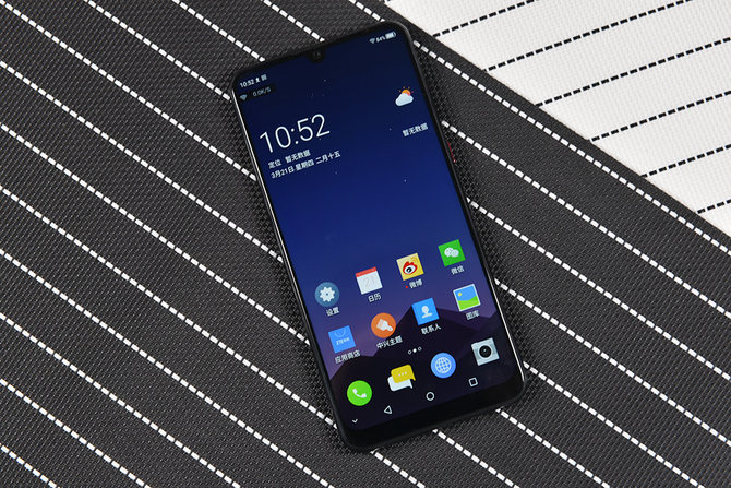 中兴Blade V10采用了主流的“水滴屏”设计,3200万像素的摄像头被安置在“水滴”中,微缝听筒、光线距离感应器与呼吸灯则被隐藏在上边框中。