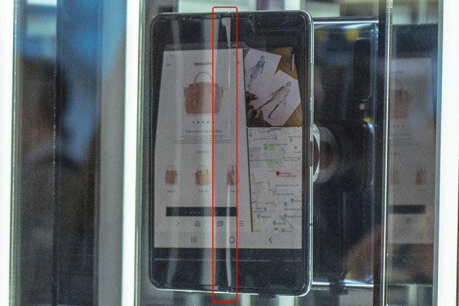 在新品发布会的过程中,Galaxy Fold 的展示背景是两层厚厚的极反光玻璃。前来观看的人被保持在距离显示器几英尺的地方,而且主办方不让他们进行拍照。另外展示手机是在一个黑暗的环境中进行的,观众很难通过肉眼看出 Galaxy Fold 屏幕的实际样子。三星官方如此细心的保护,让我们不得不怀疑三星是否隐藏了关于 Galaxy Fold 的某些“特点”。