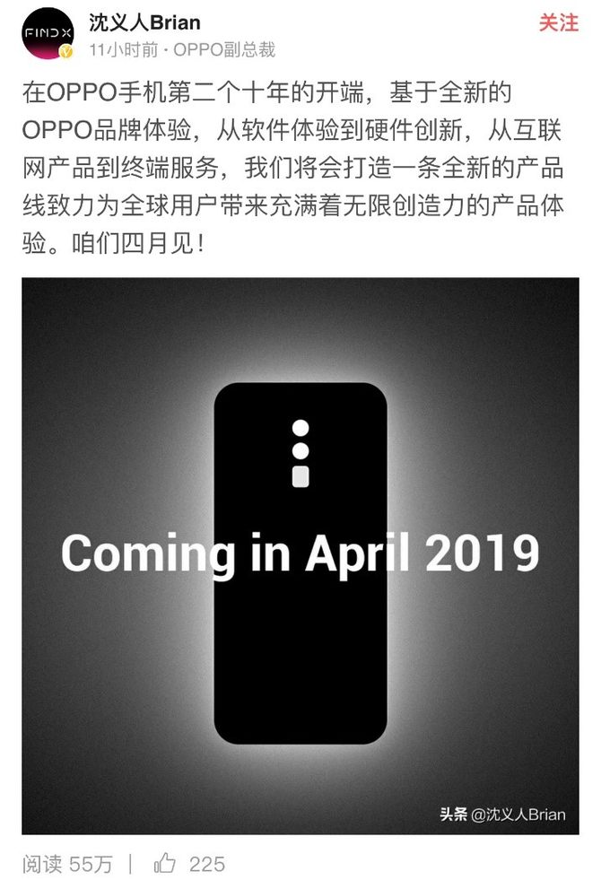 虽然OPPO并没有明确表示搭载10倍光学变焦的产品和5G新机是同一款产品,不过从会后OPPO副总裁沈义人发布的微头条透露的信息来看,OPPO将会在4月份发布一条全新的产品线,这似乎暗示着这条新的产品线将是汇集包括10倍混合变焦以及5G等在内的高端旗舰产品。