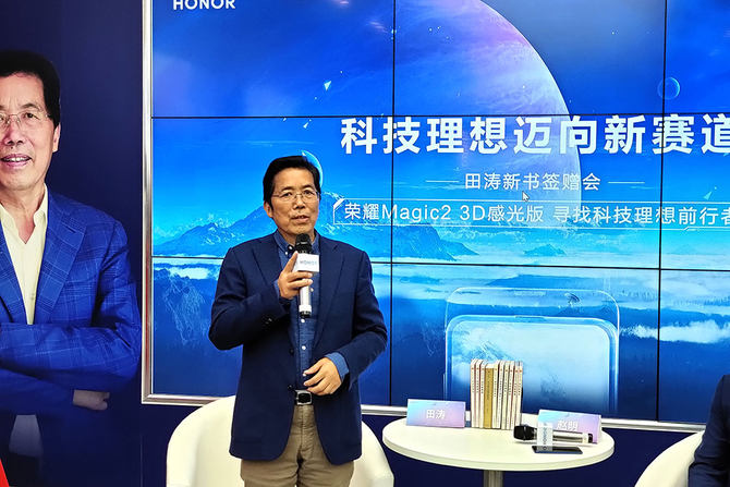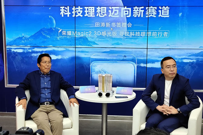 3月3日,上海五角场的荣耀手机上海首家高级体验店举行了一场知名学者、华为国际咨询委员会资深顾问田涛新书《迈向新赛道》的签赠会,荣耀总裁赵明出席这个活动,并在现场首发了期盼许久的超旗舰荣耀Magic2 3D感光版,此外,“寻找科技理想前行者”活动也宣布正式开启。