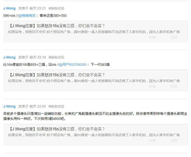 魅族CEO黄章最近在魅族论坛上不断爆料,魅族16s的“线上发布”一直未停止。昨天,黄章在论坛上和魅友们交流的时候表示魅族16s定价3298元可以的,毕竟“用料贵10%,买贵10%是理所当然”。