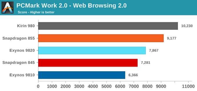 国外媒体Anandtech最近发布了一篇关于手机体验的评测文章,主要针对高通骁龙855和三星9820平台的三星S10,在测试的同时加入了华为的麒麟980作为参考,主要测试PCmark和Speedometer两款软件,但测试结果让人意外,使用麒麟980处理器表现超越了高通骁龙855和三星9820。