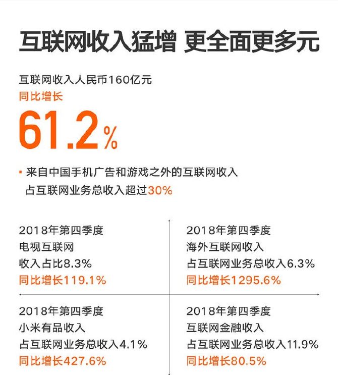 小米另外的主要收入来自互联网服务,总收入160亿人名币,同比增长61.2%。其中值得注意的是来自手机广告和游戏之外的收入占互联网业务总收入超30%,当然这里的广告也包括小米电视等其他形式的广告,并不是都是MIUI中的广告。